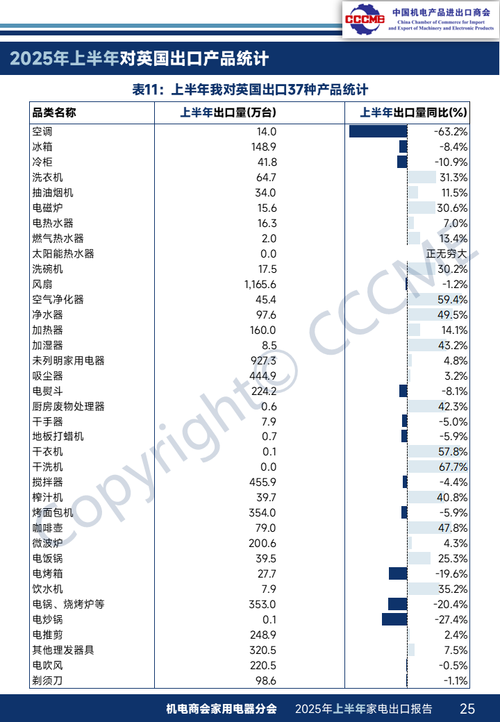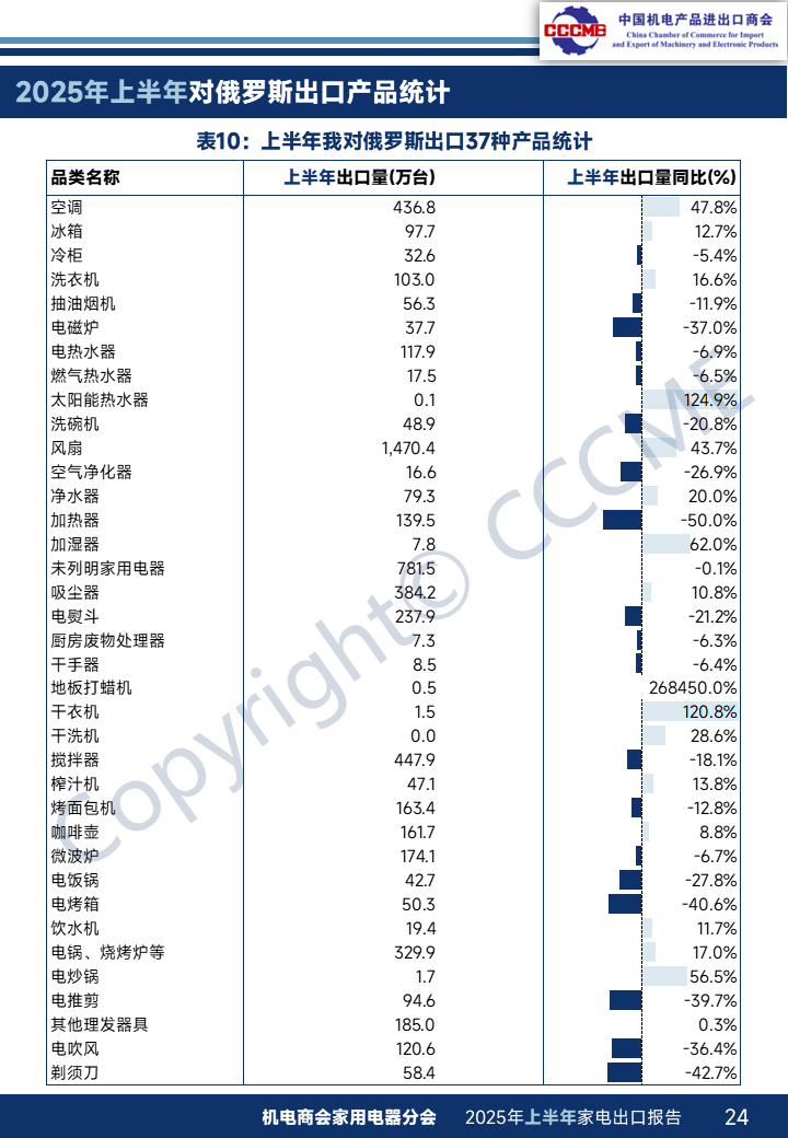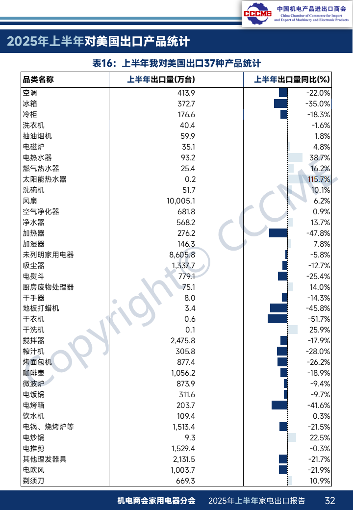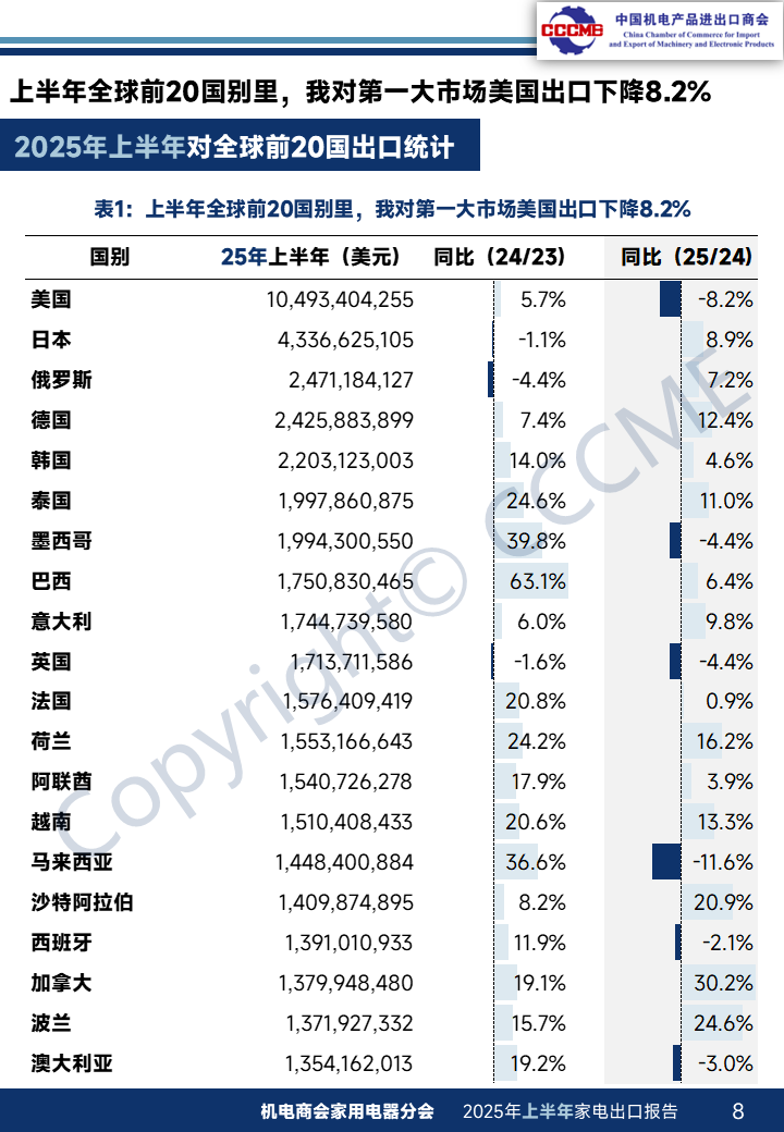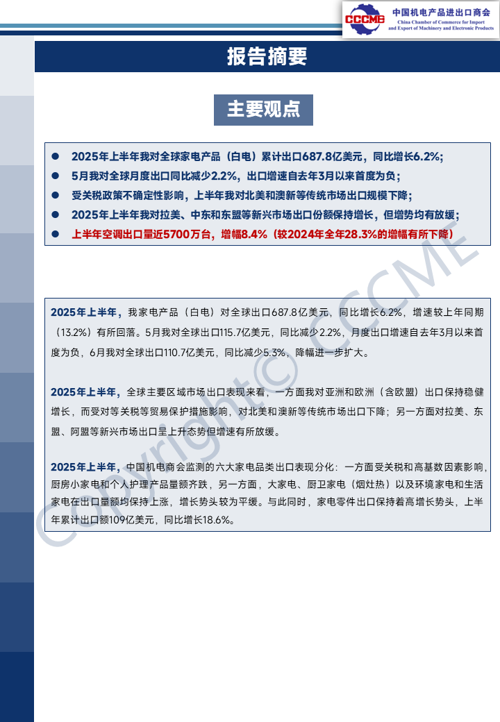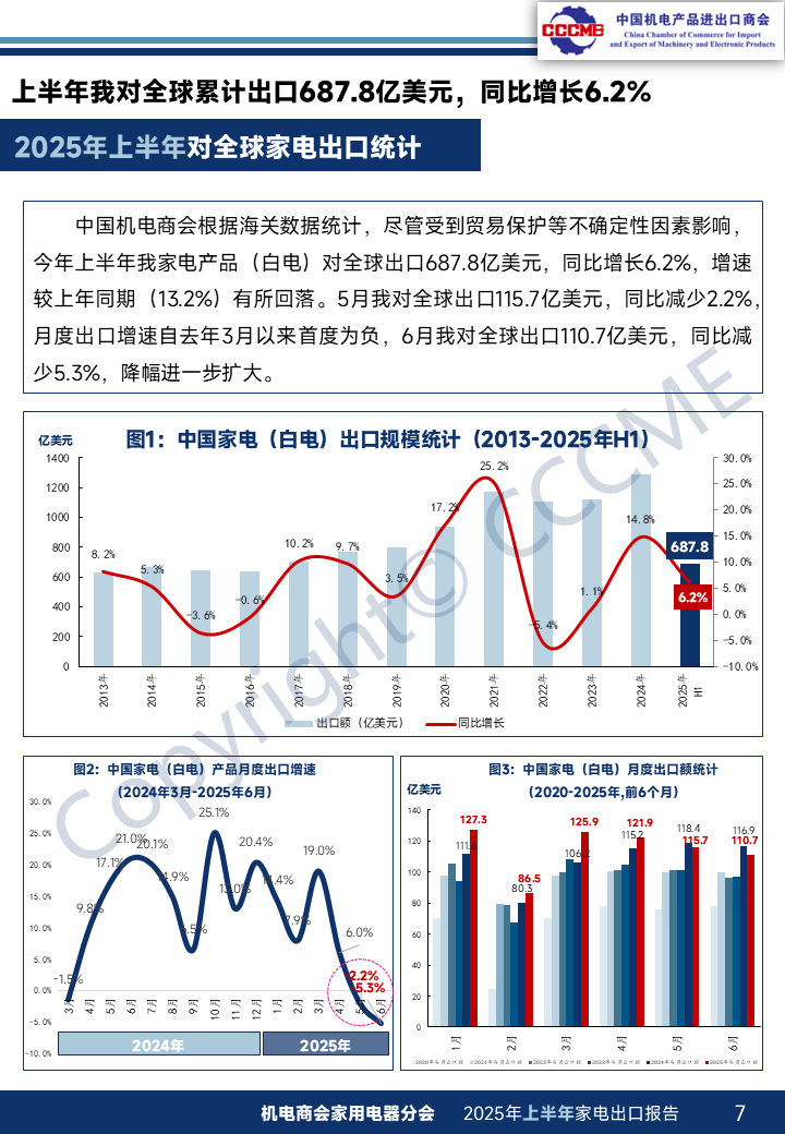 ❖本文节选《2025年上半年中国家电(白电)出口分析报告》详细版内容,敬请阅读。
