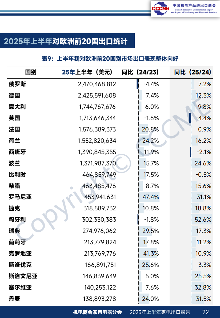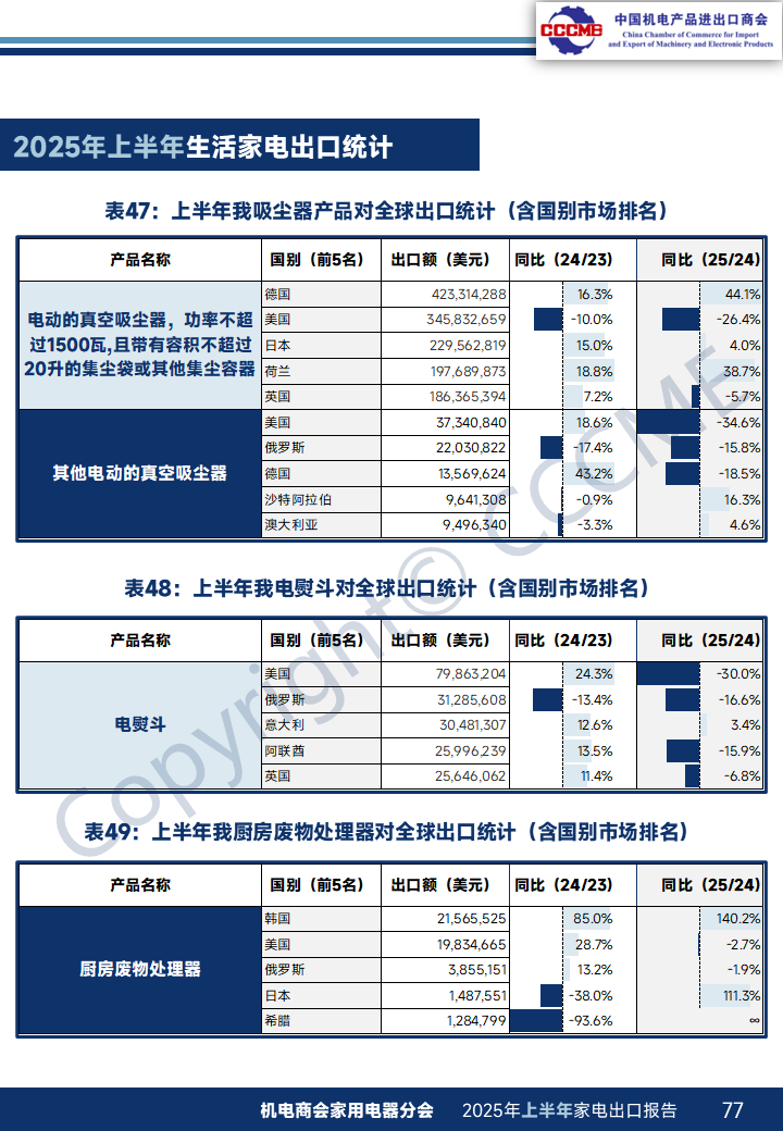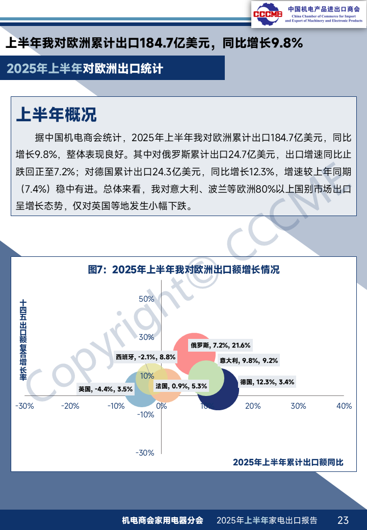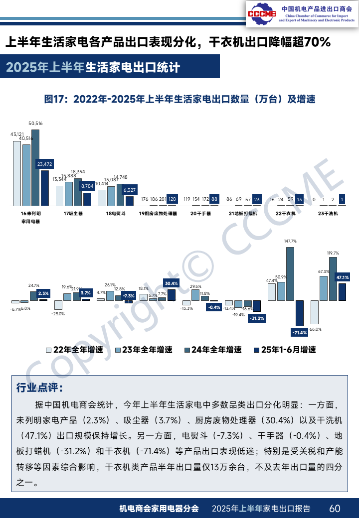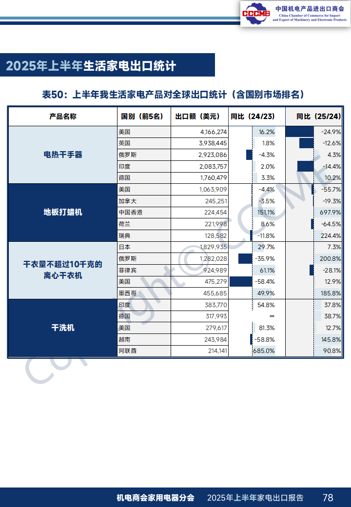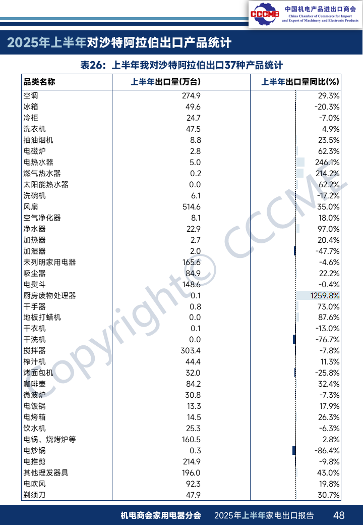 ❖本文节选《2025年上半年中国家电(白电)出口分析报告》详细版内容,敬请阅读。
