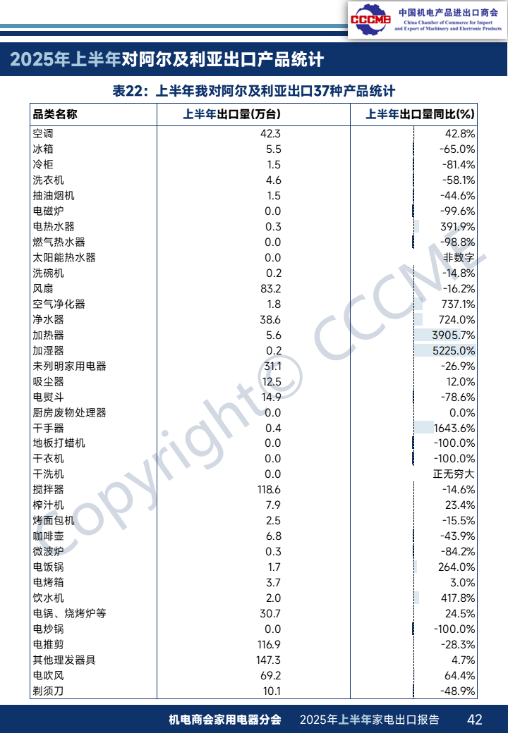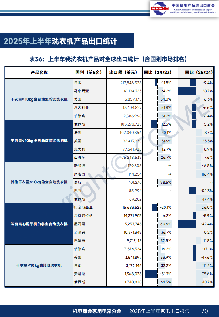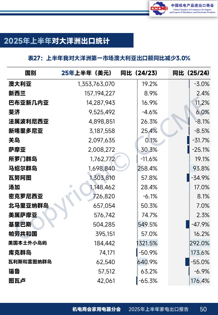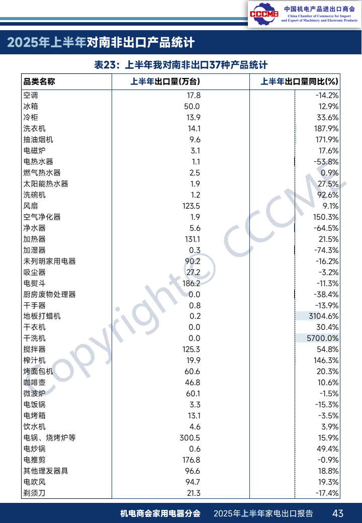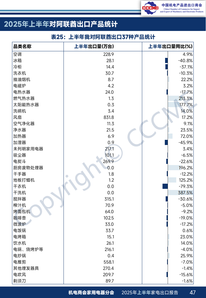 为便于业界查阅使用,现发布《2025年上半年中国家电(白电)出口分析报告》【完整版】,并更新部分数据。