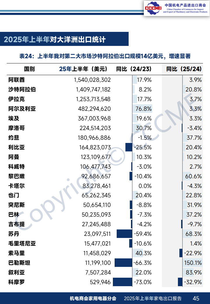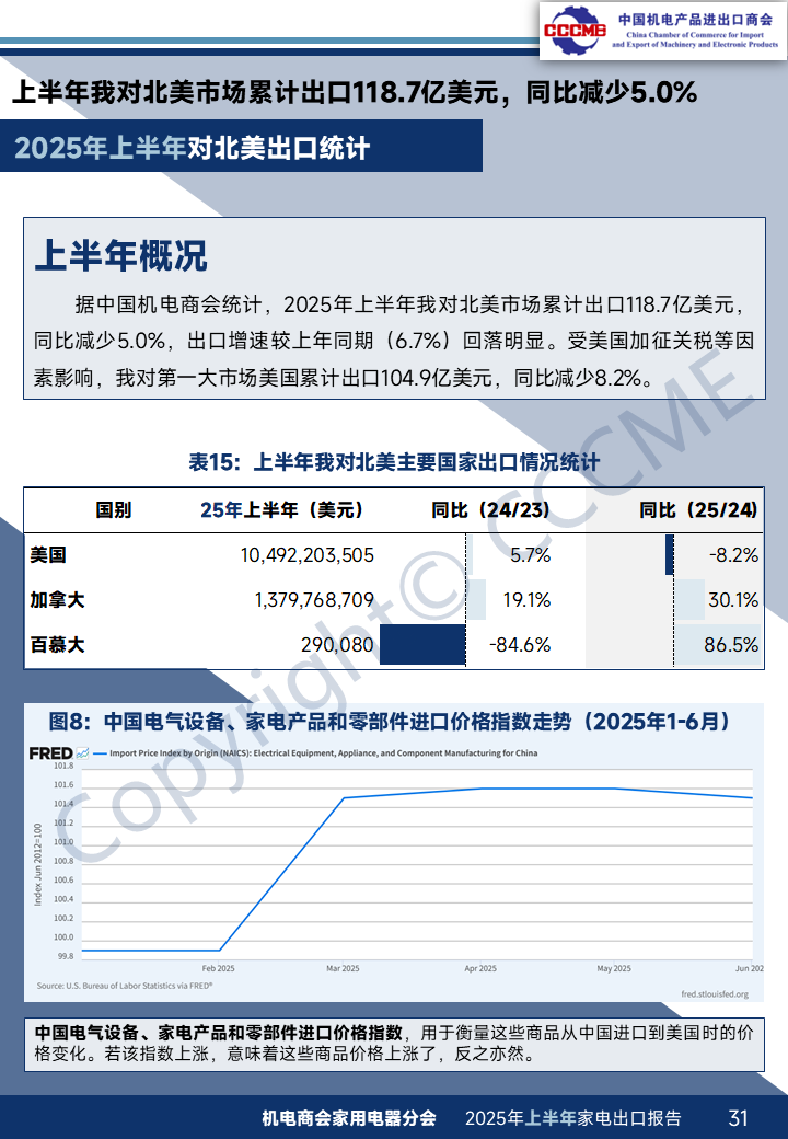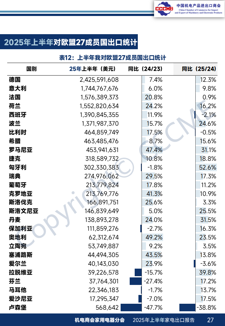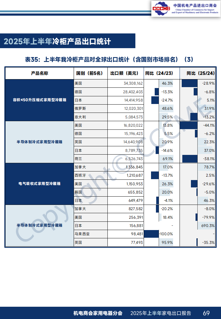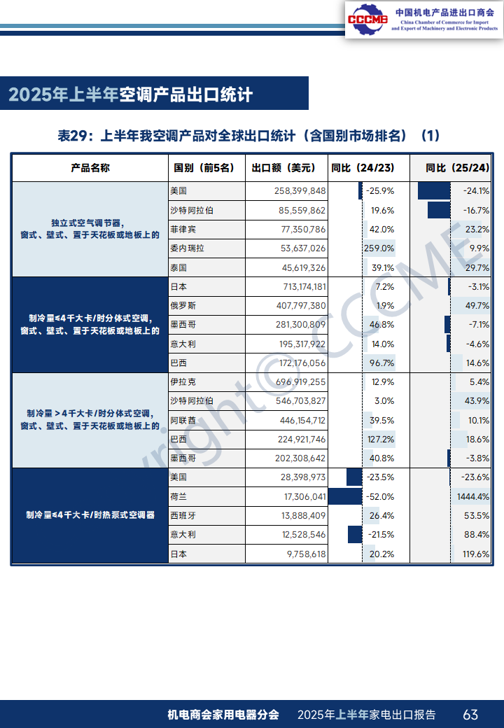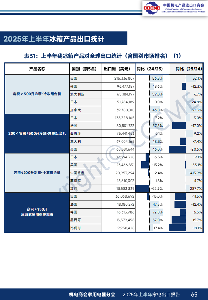 为便于业界查阅使用,现发布《2025年上半年中国家电(白电)出口分析报告》【完整版】,并更新部分数据。