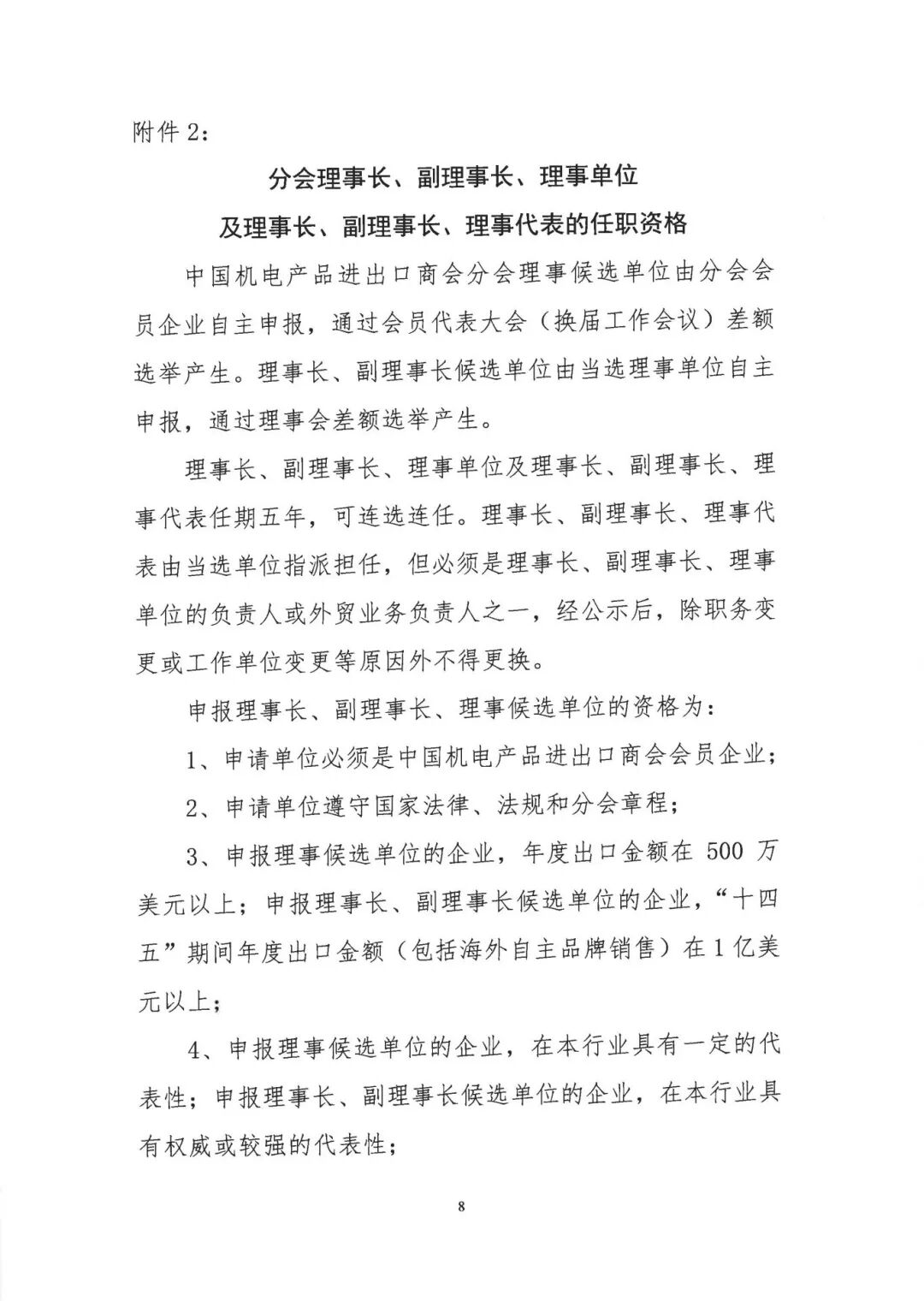 根据中国机电商会分会章程,本次会议将组织换届选举,产生分会理事长单位一家、副理事长单位、理事单位若干家。