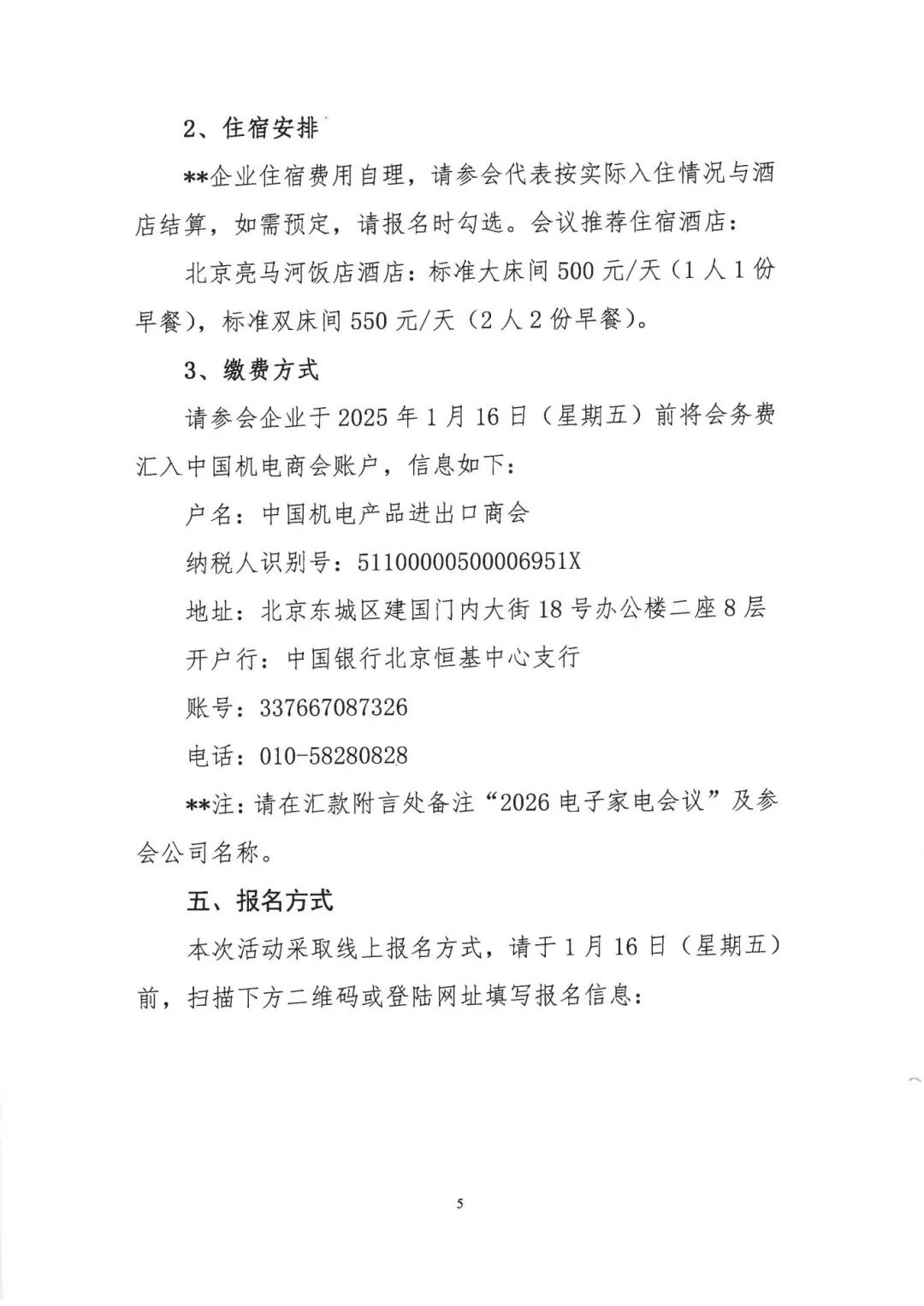 **注:请在汇款附言处备注“2026电子家电会议”及参会公司名称。